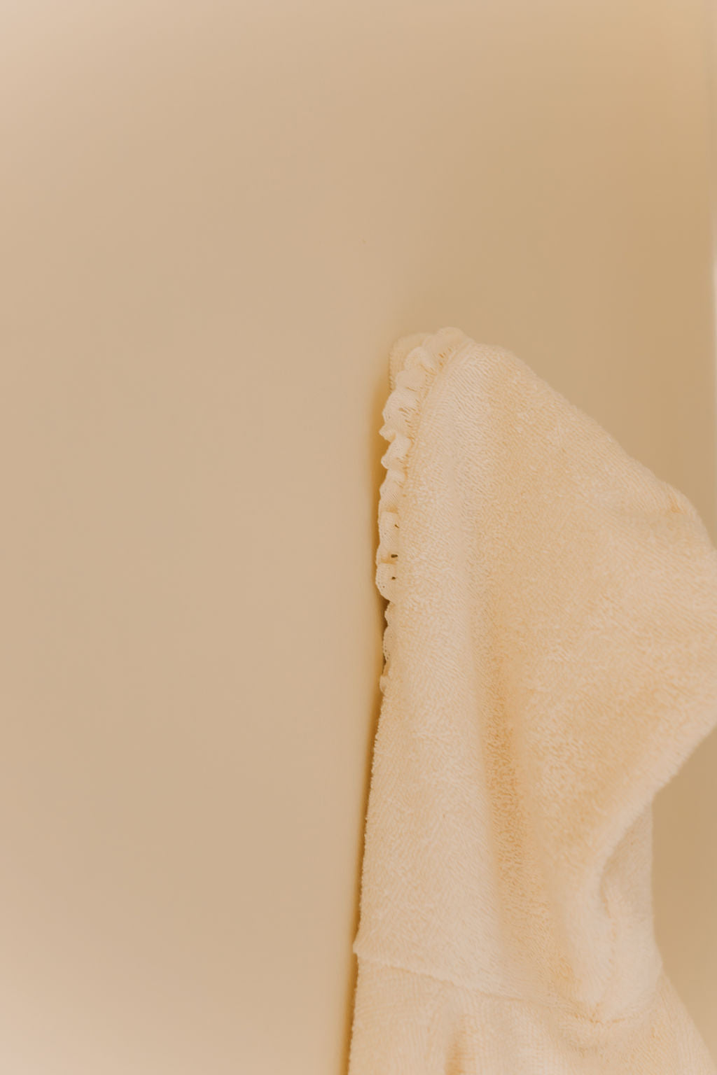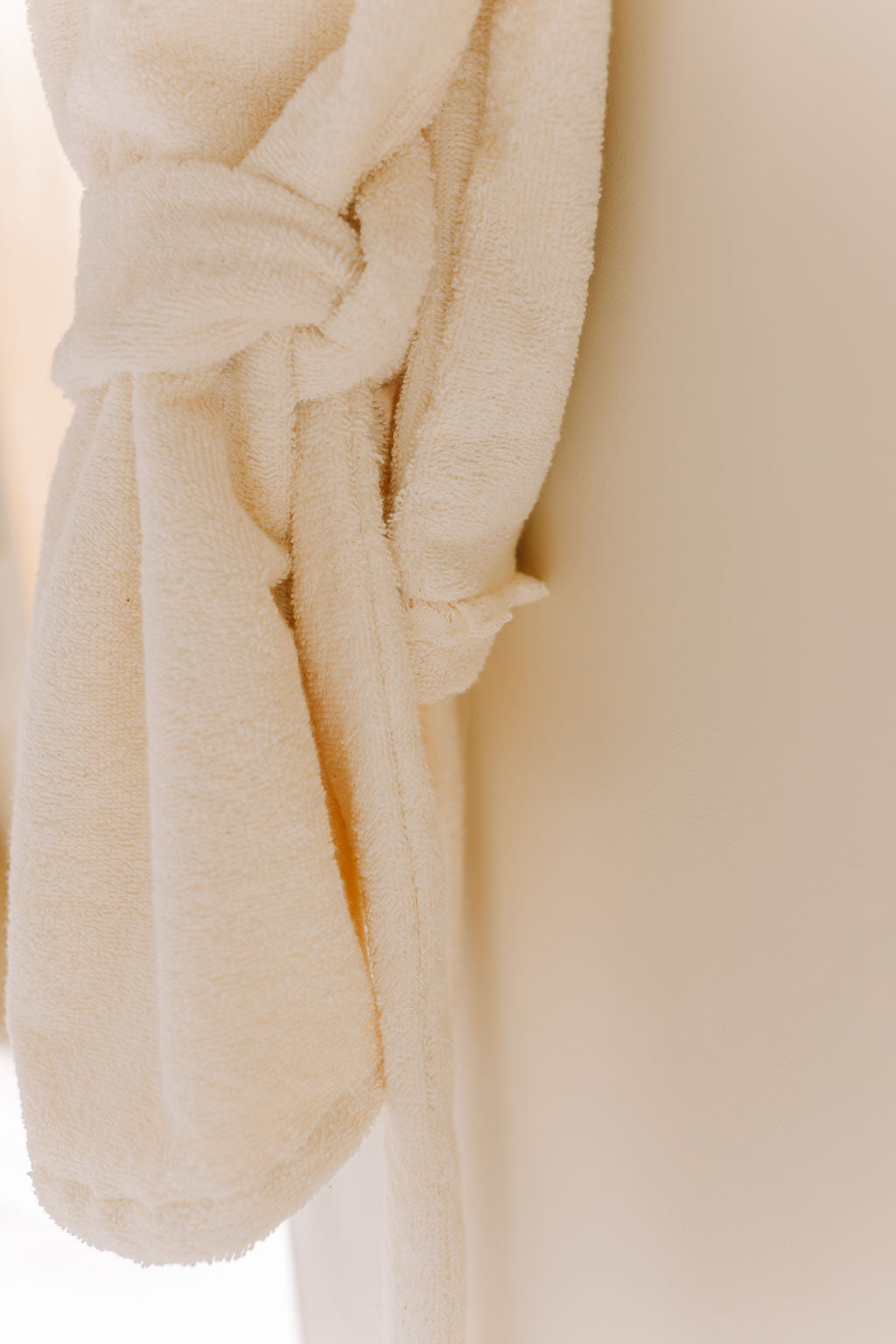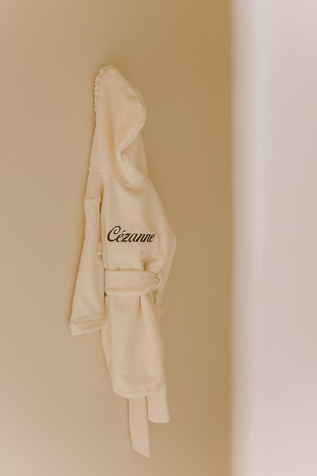 Verkrijgbaar in twee tijdloze kleuren – beige en ecru – en afgewerkt met oog voor detail. Dankzij de ruime pasvorm kunnen kindjes deze badjas lang doordragen.