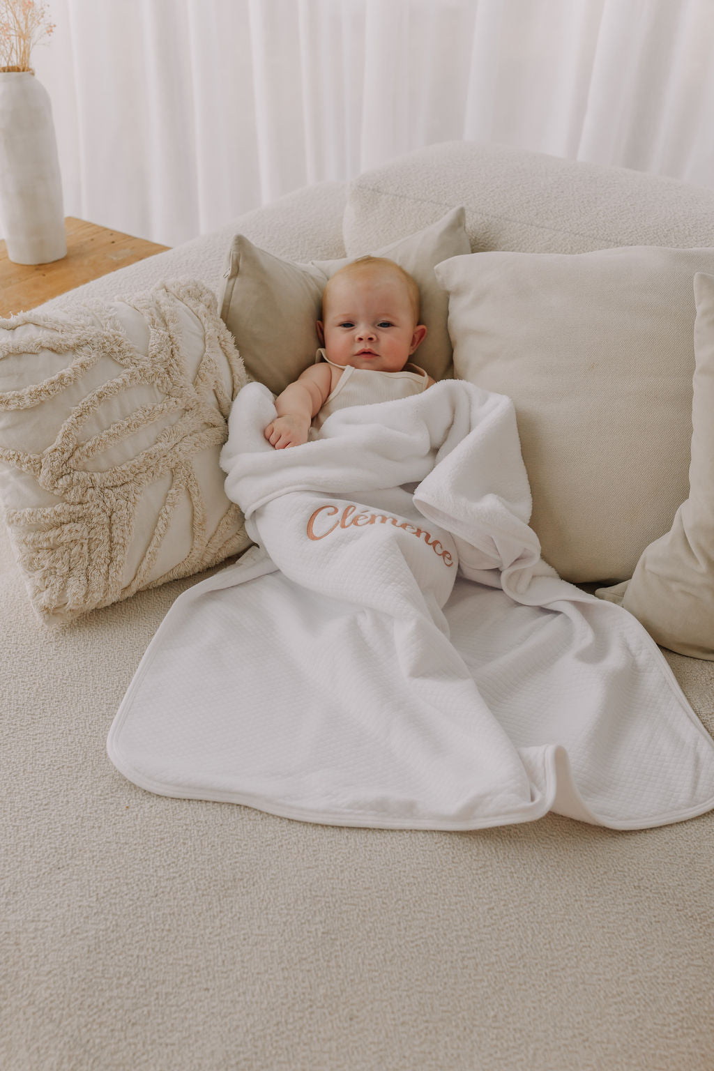 Kies voor een borduring op het fleece of op het deken zelf ✨
