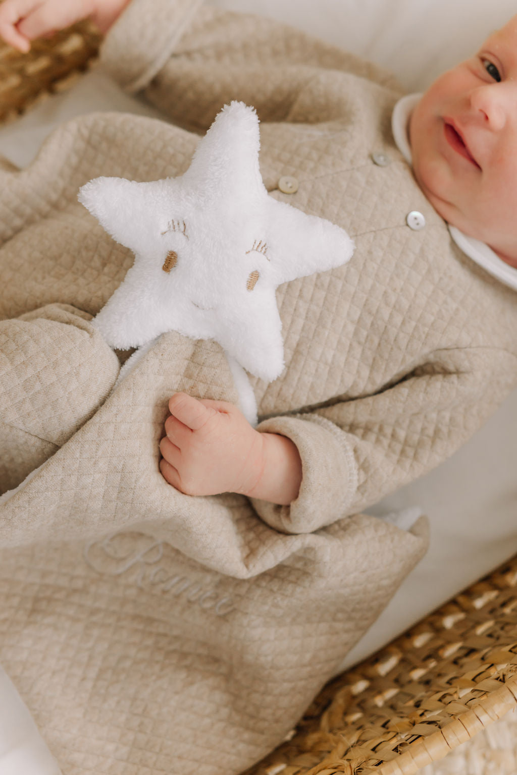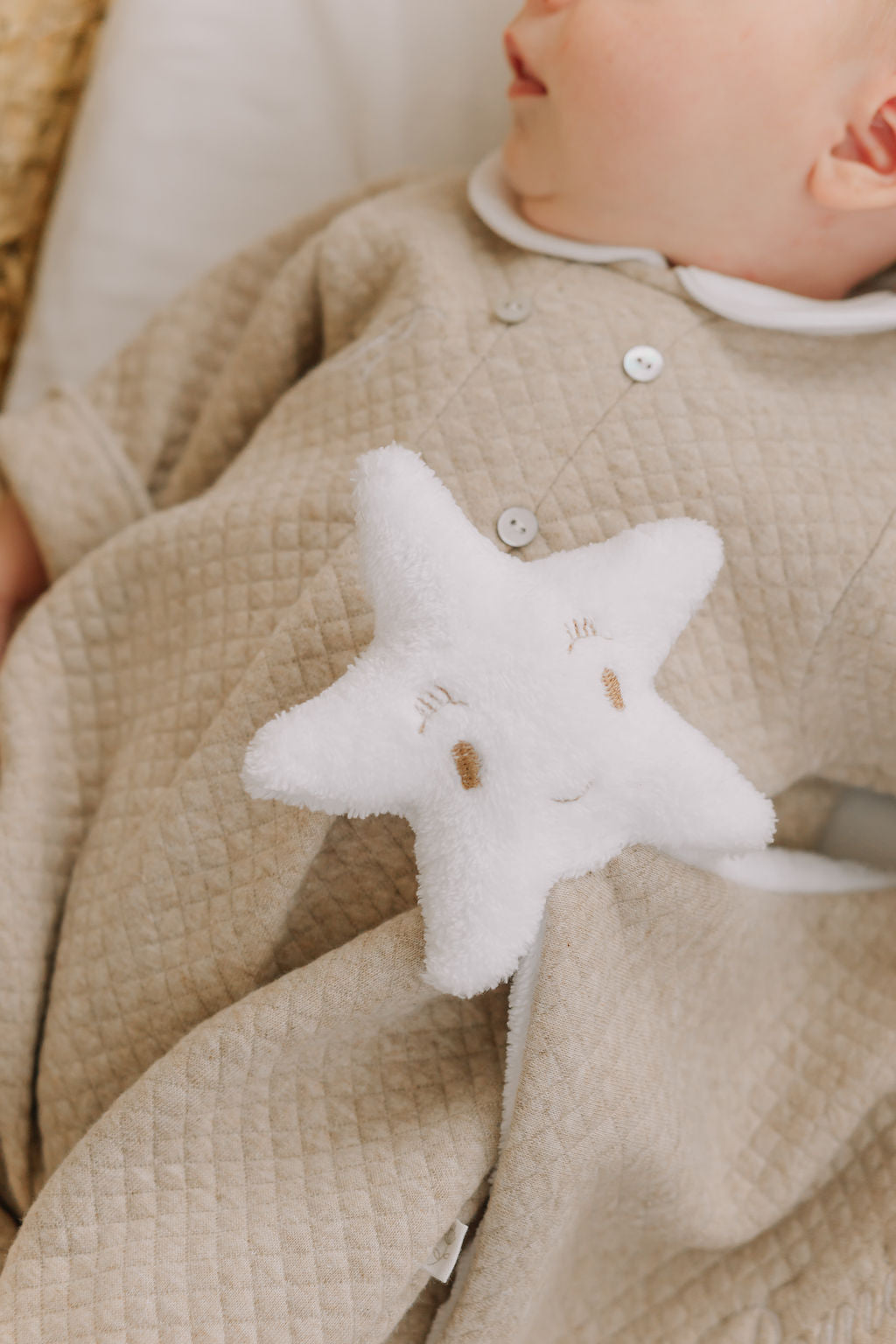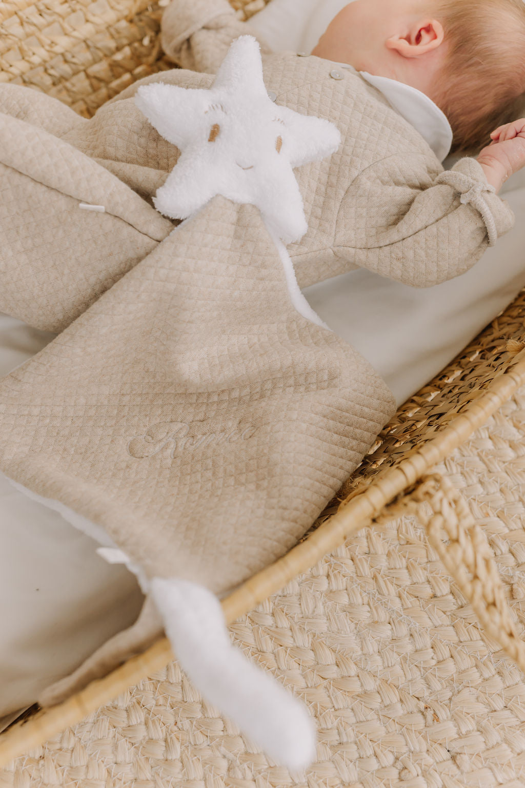 Ons heerlijke knuffeldoekje in losangestof is een must-have voor elke kleine dromer 🌙. Bovenaan prijkt een schattige ster, perfect om vast te grijpen tijdens het slapen of knuffelen.