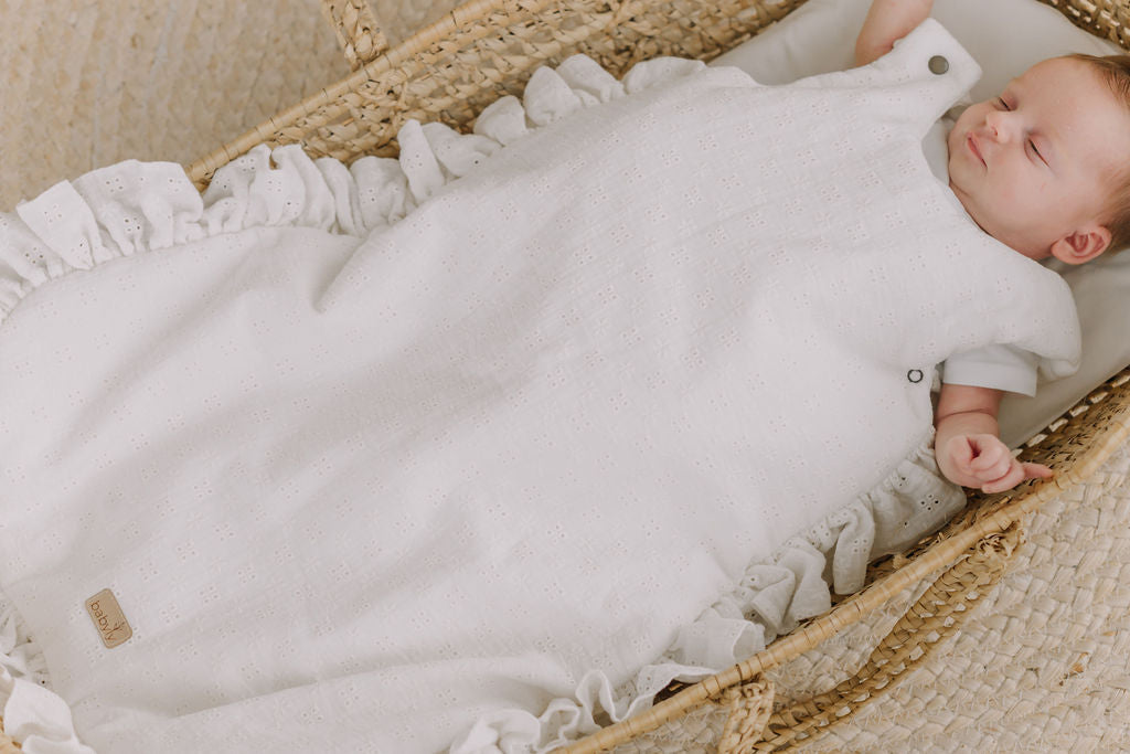 Deze betoverend mooie slaapzak is een echte must have voor meisjesmama’s! Het verfijnde bloemenborduursel, gecombineerd met elegante frill details, tilt meisjesachtig naar het next level. Uitgevoerd in een stralend witte tint straalt deze slaapzak pure luxe uit – zonder het onbetaalbare prijskaartje.