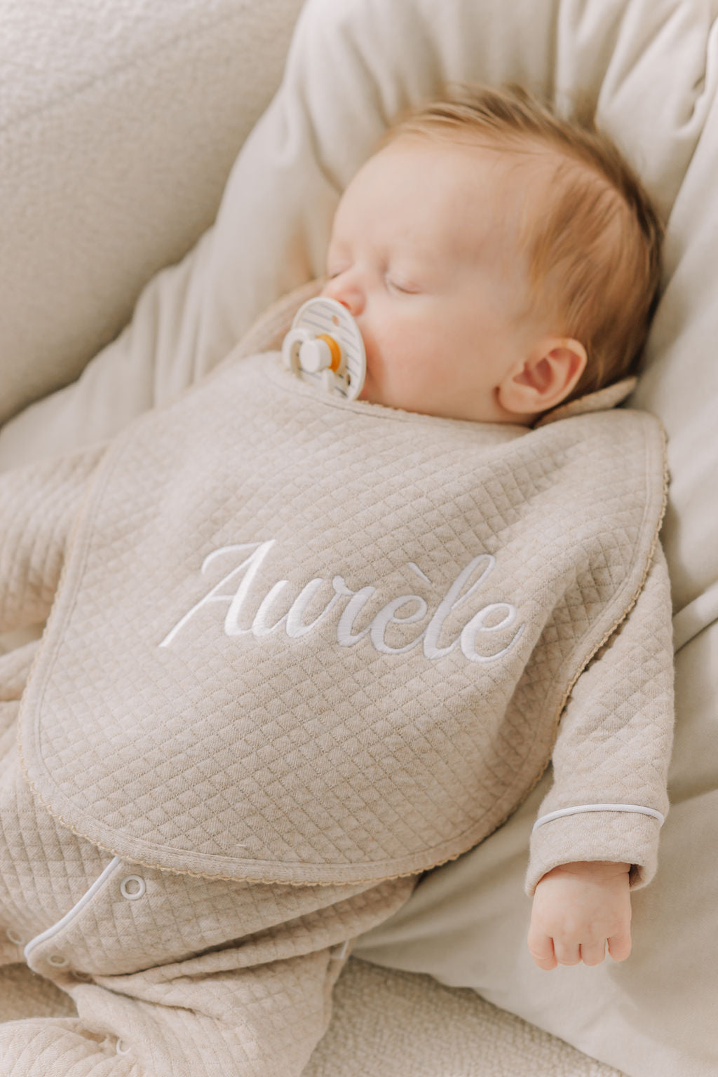 Ontdek ons luxueus geborduurd slabbetje, met een stijlvolle uitstraling én praktische touch. Gemaakt uit zachte losagne stof en afgewerkt met fijne doorstikte details, straalt dit slabbetje pure klasse uit.