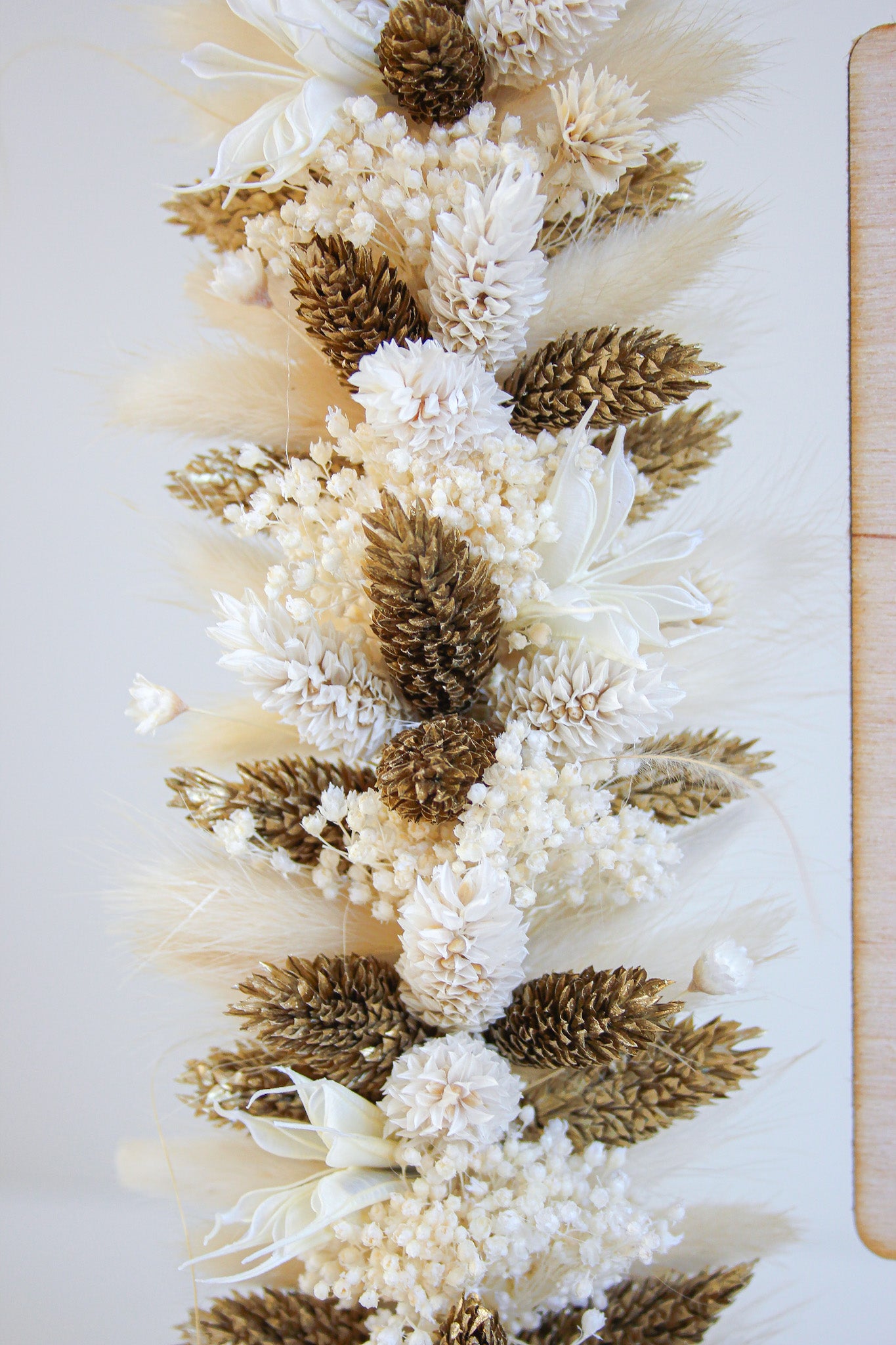 Je kan kiezen uit de kleur van droogbloemen, maar ook het frame komt in 2 verschillende kleuren : goud en zwart.