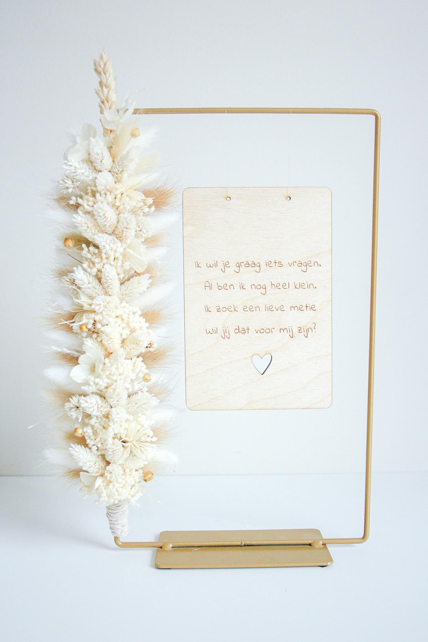 Wil jij jouw belangrijke/speciale vraag op een unieke manier brengen? Dan is het rechthoekig flowerframe daar het perfecte geschenk voor!