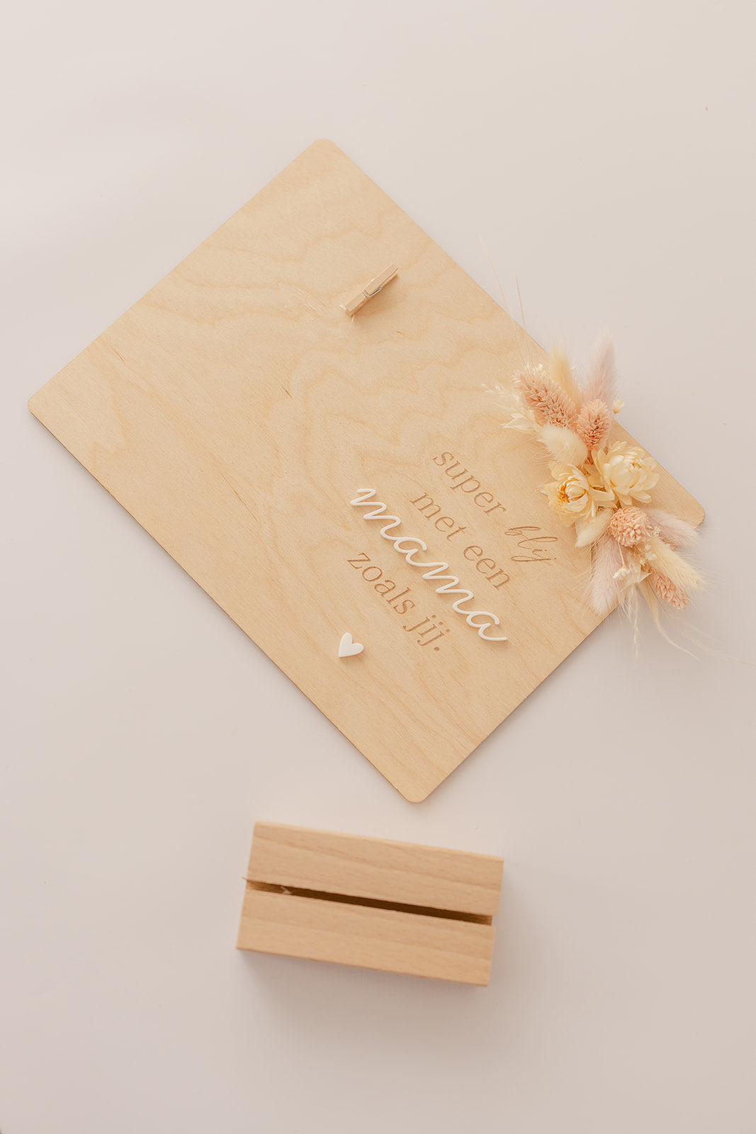Dit geschenk is echt een plezier om te geven, hang jouw favoriete foto aan de houten clip en zorg zo voor een cadeau die een eeuwige herinnering blijft voor jouw mama.