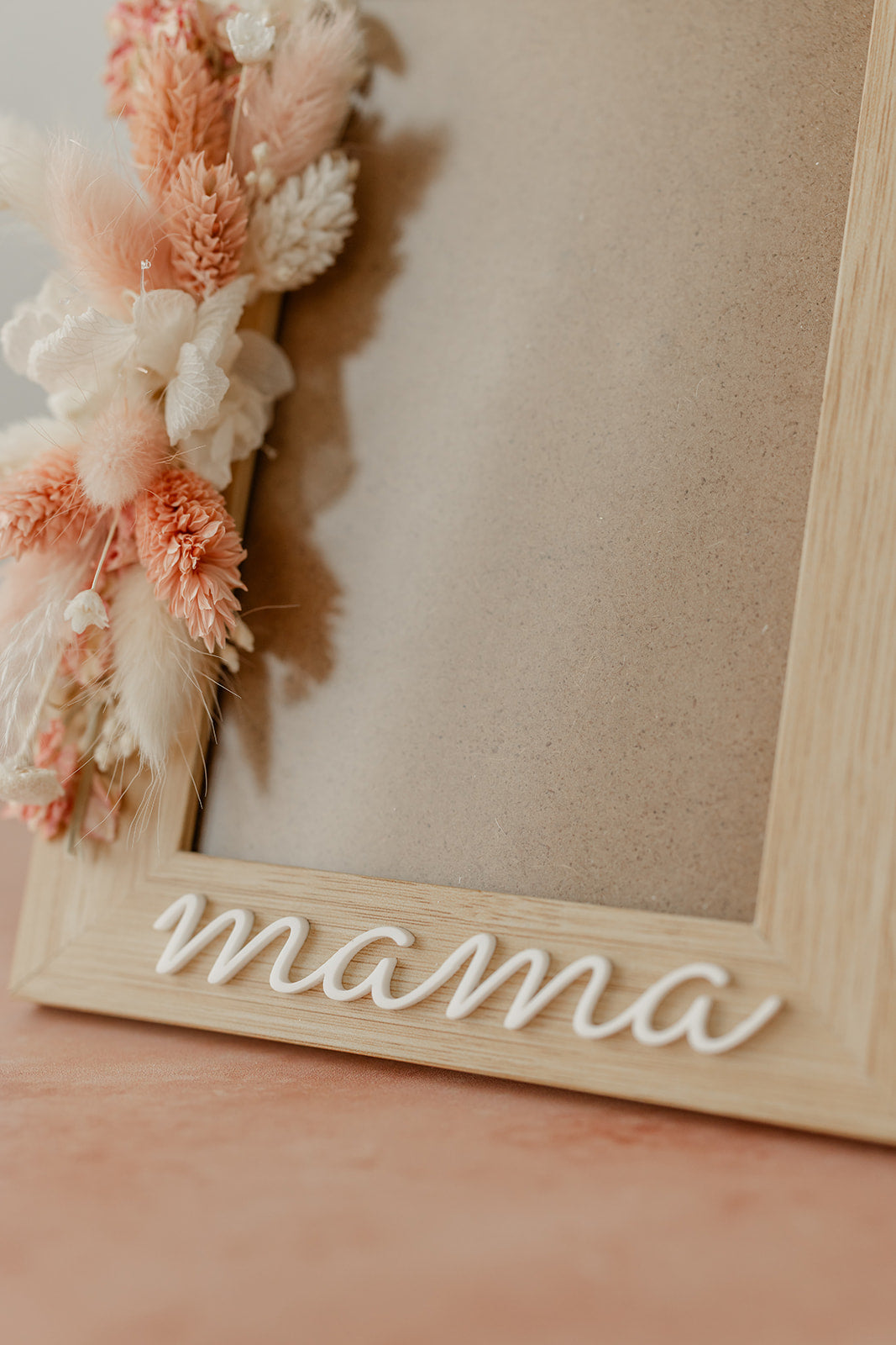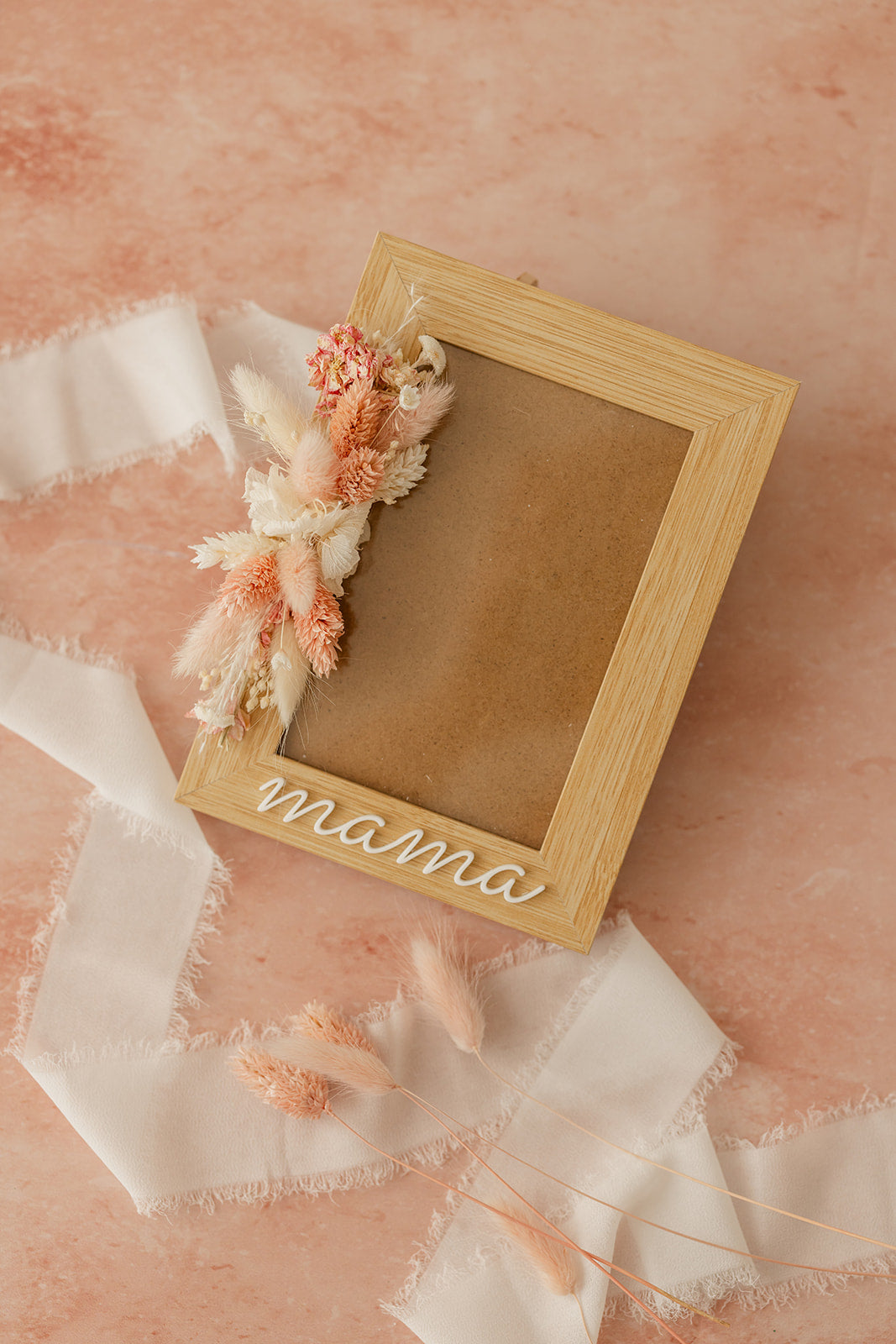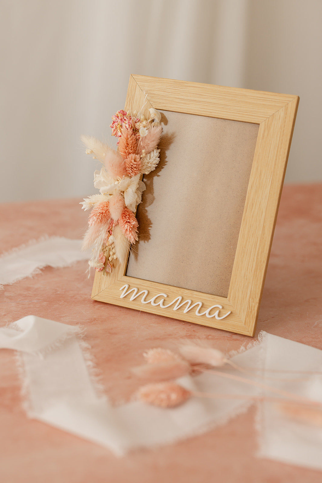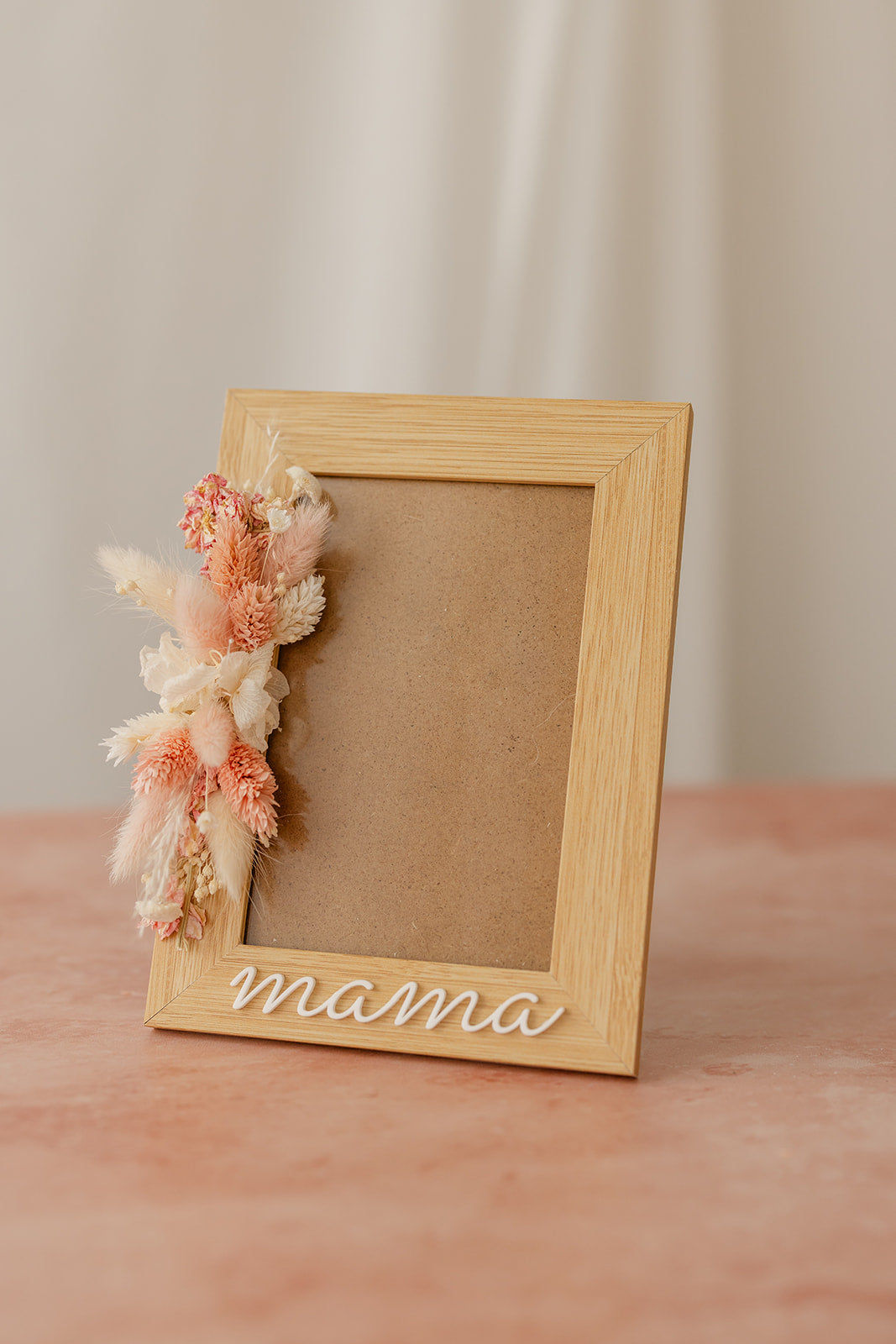 Deze houten fotokader van 10 op 15 cm is net dat tikkeltje meer dan een gewone fotokader β¨. Met liefde afgewerkt met een stijlvol boeketje droogbloemen π en een uniek detail in wit acryl π€, straalt hij warmte en elegantie uit.
